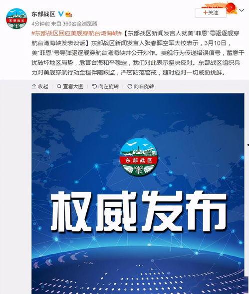 最近,网络上流传出一则关于台海的最新爆料,让人不禁为之一震。据可靠消息透露,我国在台湾海峡附近进行了一次大规模的军事演习,旨在展示我国捍卫国家主权和领土完整的决心。